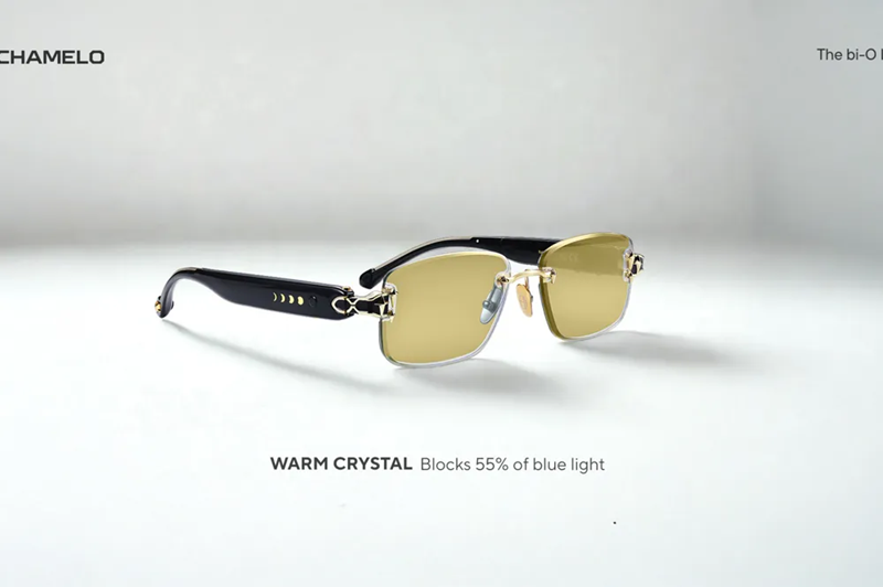 Chamelo propose une solution d’eyewear intelligente pensée pour la communauté biohacking et les utilisateurs soucieux de leur rythme biologique, avec sa technologie bi‑O Biohacking Lens. C’est un système de lunettes adaptatives utilisant la technologie de cristaux liquides Prismatic™ de Chamelo pour remplacer plusieurs paires de verres par une seule monture capable de changer de teinte au cours de la journée. Les lenses passent d’un jaune le matin à un orange en milieu de journée, puis à un rouge en soirée, soutenant ainsi l’alignement du rythme circadien, la performance visuelle et la qualité du sommeil à différents moments de la journée. Construites sur la base de cadres légers et UV400, ces lunettes offrent une transmission de lumière variable et une option de blocage avancé de la lumière bleue, aidant les utilisateurs à gérer leur exposition lumineuse de manière pratique et efficace, un atout pour la santé visuelle, le bien‑être général et la régulation naturelle du cycle veille‑sommeil dans un monde numérique très éclairé.