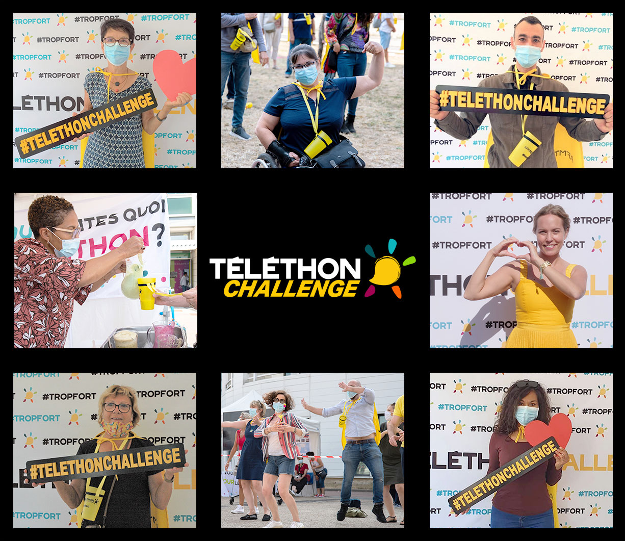 - Vous publiez votre challenge (photo ou vidéo) sur vos réseaux sociaux avec #TéléthonChallenge et le lien vers l’appel à don qui suit : dontelethonchallenge.fr