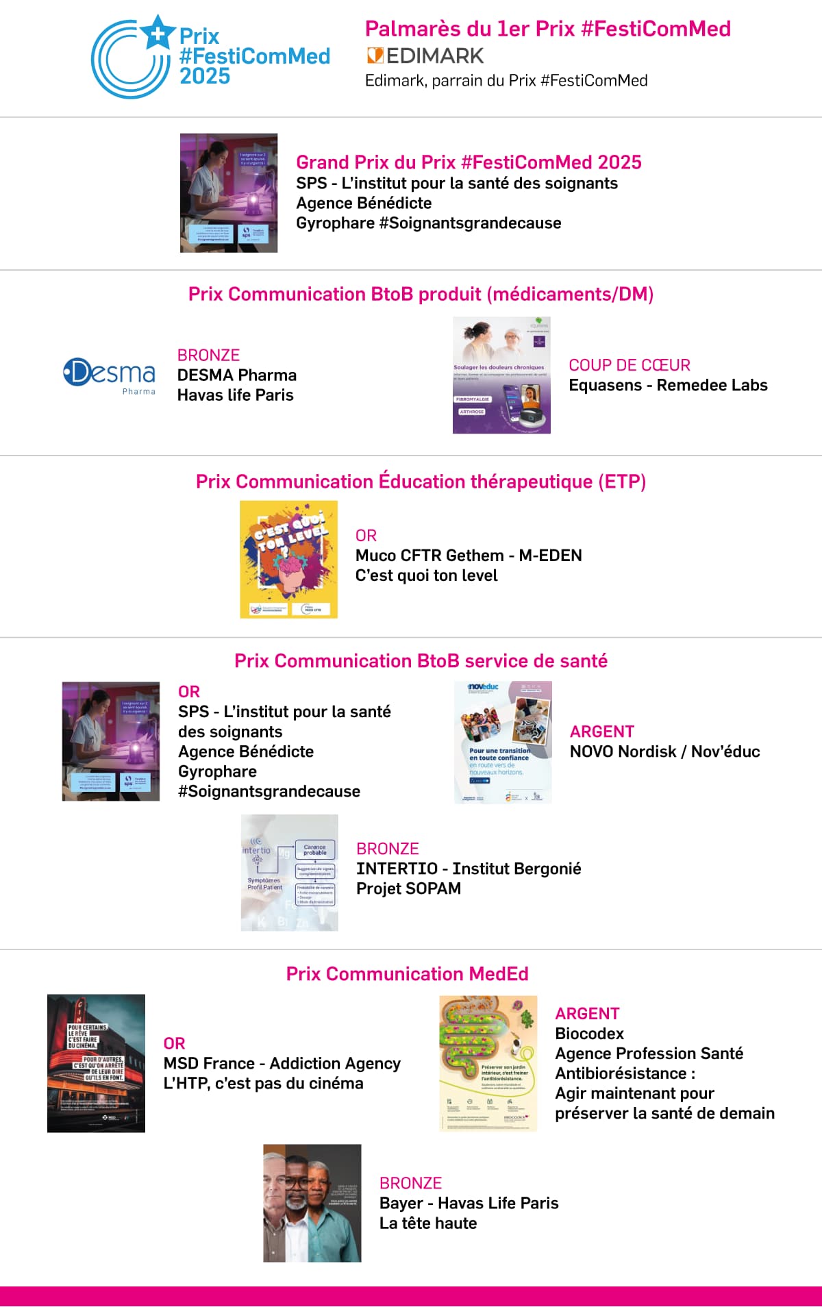 Grande nouveauté de cette édition, le Prix #FestiComMed, dédié à la communication à destination des professionnels de santé, a été intégré au sein du Festival, aux côtés du traditionnel Prix #FestiComSanté. Une évolution qui reflète l’importance croissante d’une communication ciblée, adaptée à tous les publics de santé, qu’ils soient patients ou soignants.