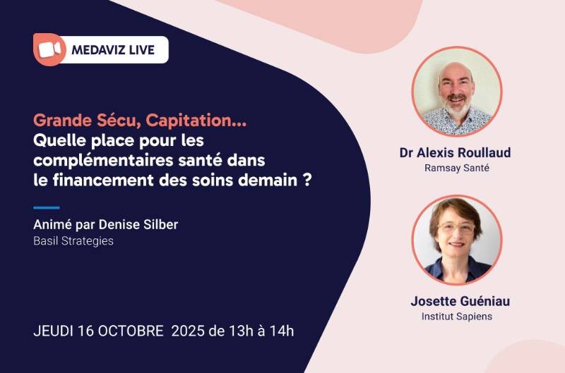 Medaviz organise un nouveau webinar sur le thème « Grande Sécu, capitation… quelle place pour les complémentaires santé dans le financement des soins demain ? » avec Josette Guéniau, Directrice de l’Observatoire Santé Innovation, Institut Sapiens et le Dr Alexis Roullaud, Coordinateur médical des centres médicaux, Ramsay Santé.