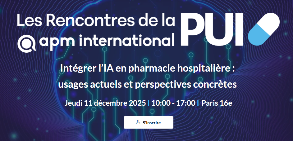 Le groupe APM International (Europa Group) organisera la première édition des Rencontres de la PUI le jeudi 11 décembre à Paris : placée sous le thème « IA & PUI: formation et décryptage de l’actualité », cette journée sera consacrée aux usages actuels et aux perspectives de l’intelligence artificielle en pharmacie hospitalière.